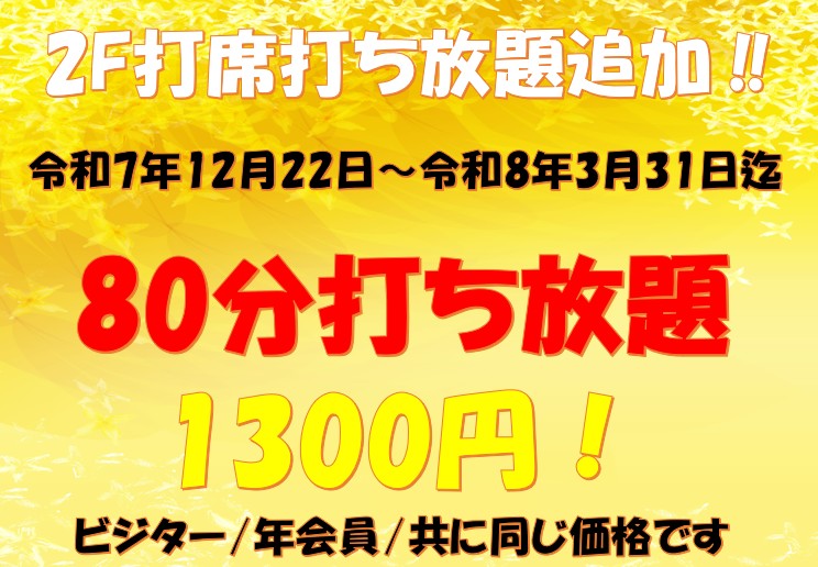 1月1日~3月31日の期間中、2F打席の球数を15球増量します!!